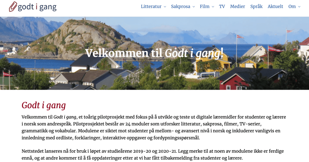 Godt i gang is a collaborative project which expands the intermediate and advanced level curricular options for individuals interested in learning Norwegian.