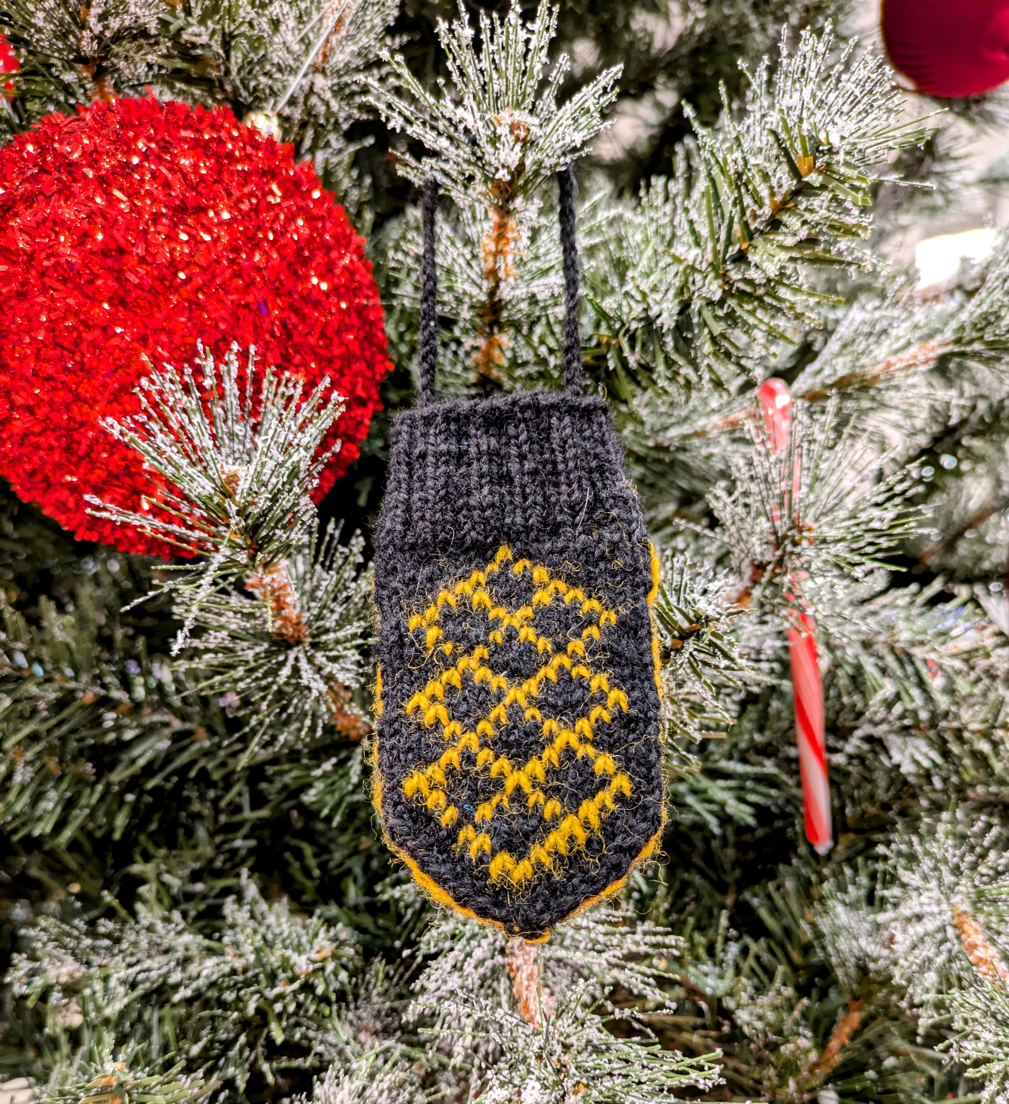 The second of the St. Olaf College sesqui patterns to be released is the holiday ornament and gift card holder. The holiday ornament and gift card holder use the same pattern with different sized needles.